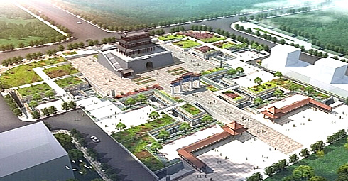 西安钟鼓楼广场位于东西南北四条大街的交汇处,广场东侧屹立着已有六百多年历史的钟楼,西侧屹立目前所存在全国最大的鼓楼。钟鼓楼广场建于上世纪90年代末期,始建之初将建于两楼之间的杂乱建筑拆除,使从前很难相见的钟楼和鼓楼"相见尽欢颜",成为了西安市一大景观,钟鼓楼广场是一项古迹保护与旧城更新的综合性工程。环境艺术设计沿着"晨钟暮鼓"这一主题向古今双向延伸,在空间处理上吸取中国传统空间组景经验,与现代城市外部空间的理论相结合,为古城西安提供了一个"城市客厅"。